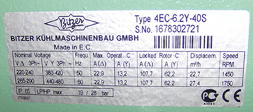 Компрессоры Bitzer отдельно от холодильного оборудования нужны, в основном, для замены вышедшего из строя компрессора или отработавшего ресурс компрессора. Так как модельный ряд компрессоров довольно большой, то для замены вышедшего из строя компрессора нужно знать его полную марку. Для этого необходимо найти шильду компрессора: