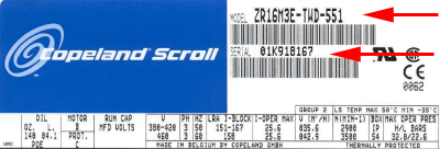 Компрессоры Copeland отдельно от холодильного оборудования нужны, в основном, для замены вышедшего из строя компрессора или отработавшего ресурс компрессора. Так как модельный ряд компрессоров довольно большой, то для замены вышедшего из строя компрессора нужно знать его полную марку. Для этого необходимо найти шильду компрессора:
